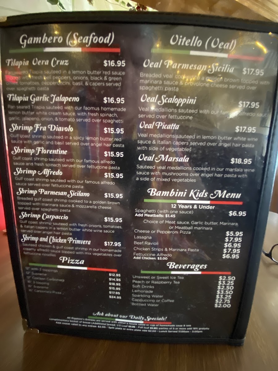 usually Red Marinara made with tomatoes, garlic, herbs, and onions. Its many variations can include the addition of capers, olives and spices. It is occasionally sweetened with a dash of red wine.